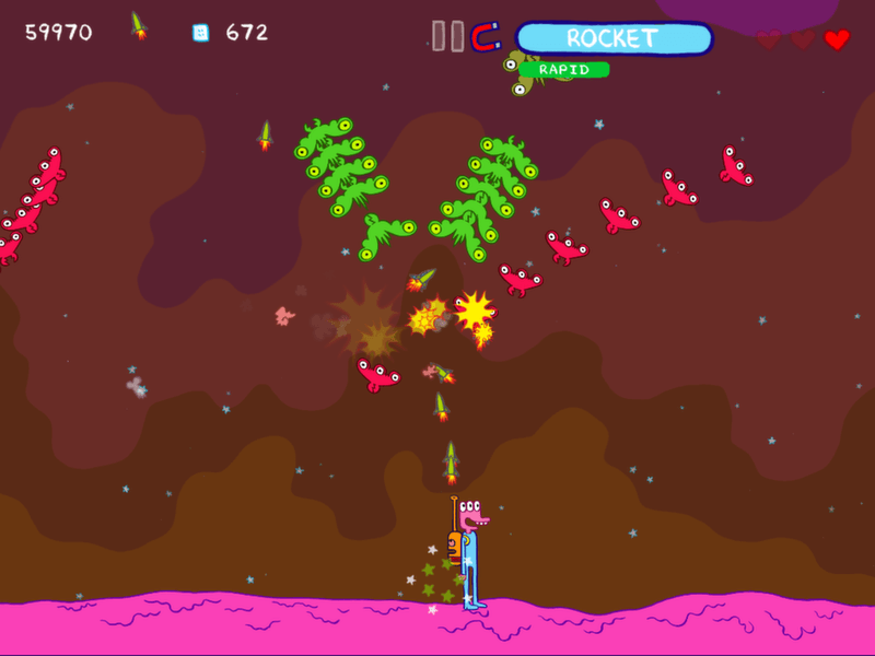 Glorkian Warrior: The Trials of Glork is a collaboration between acclaimed comic book artist James Kochalka and indie game studio Pixeljam. It’s a unique hybrid of Galaga-style shoot ‘em up, simple platforming action and Saturday morning cartoon. Help Glorkian Warrior defend his asteroid against an endless onslaught of alien invaders, and be prepared for somewhat unexpected results…